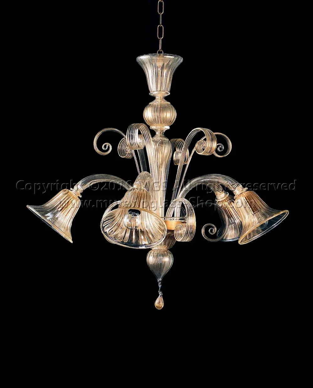 Cristal araña Murano con oro 24k sobre toda la lámpara (brazos, flores, hojas, etc.)