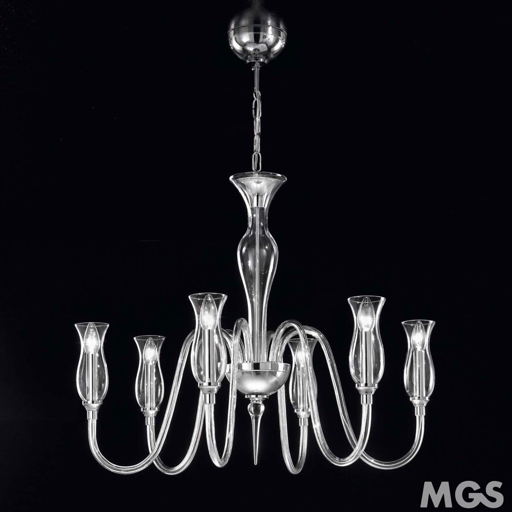 Los componentes, completamente realizados en vidrio soplado en una amplia gama de tonos, presentan una superficie lisa que enfatiza las transparencias y los juegos de luz vibrantes.